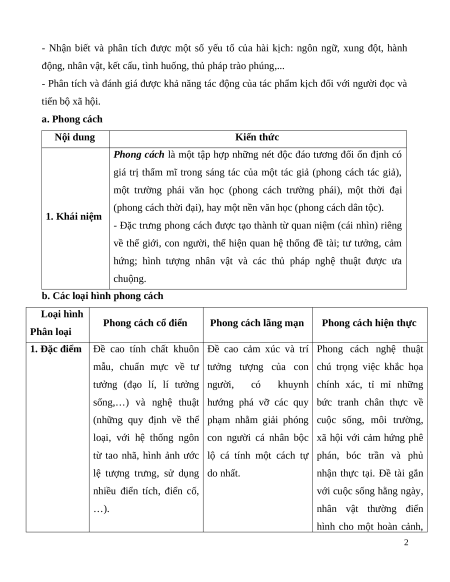 - Phân tích và đánh giá được khả năng tác động của tác phẩm kịch đối với người đọc và tiến bộ xã hội. a. Phong cách Nội dung Kiến thức