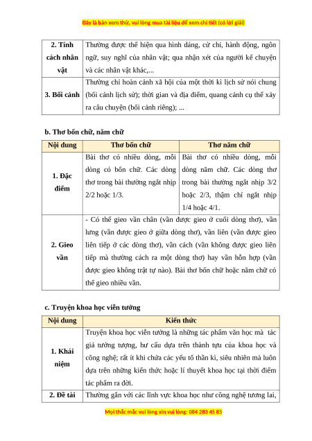 c. Truyện khoa học viễn tưởng Nội dung Kiến thức