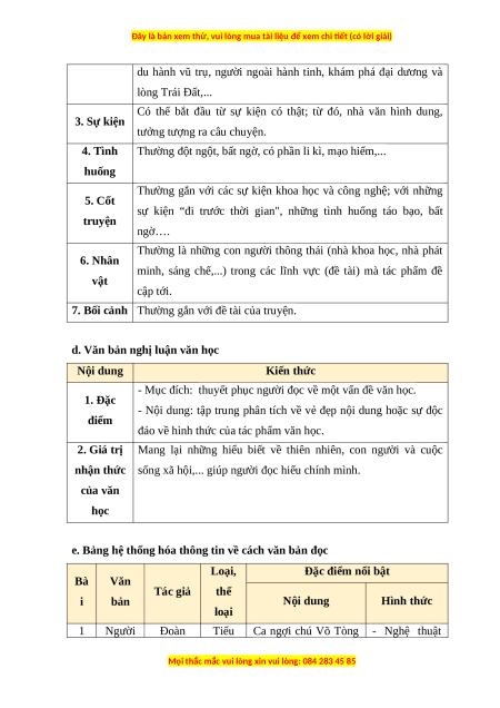 d. Văn bản nghị luận văn học Nội dung Kiến thức