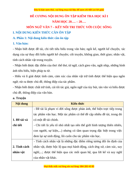 Đề cương ôn tập cuối kì 1 Ngữ văn 7 Kết nối tri thức