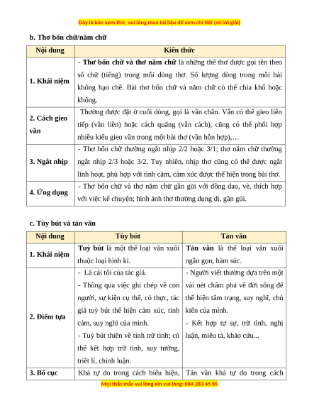 c. Tùy bút và tản văn Nội dung Tùy bút Tản văn