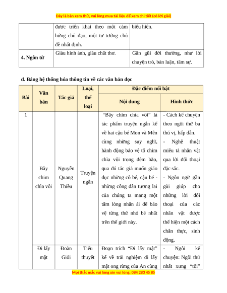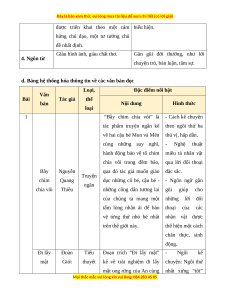 d. Bảng hệ thống hóa thông tin về các văn bản đọc Loại,