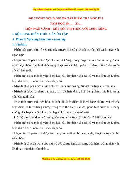 Đề cương ôn tập cuối kì 1 Ngữ văn 8 Kết nối tri thức