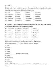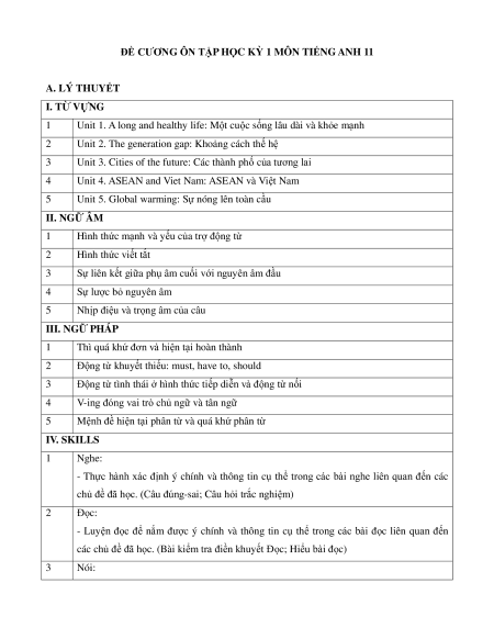 ĐỀ CƯƠNG ÔN TẬP HỌC KỲ 1 MÔN TIẾNG ANH 11 A. LÝ THUYẾT I. TỪ VỰNG 1
