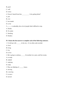 5.______ is unhealthy, but a lot of people find it difficult to stop. A. Smoke B. To smoke C. Smoking D. Smokes
