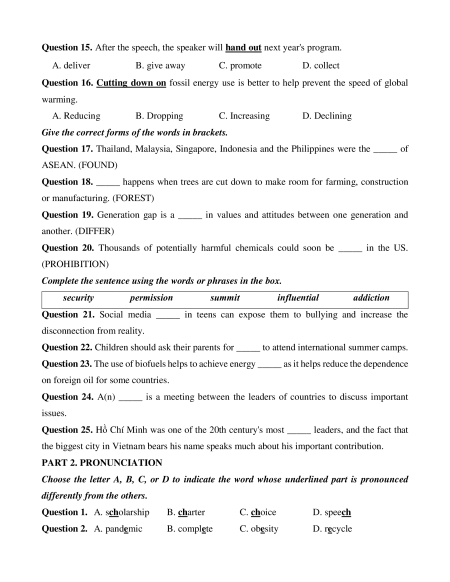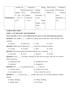 Pronunciation “…need to…” Contraction vowels Intensifiers; so, /ni:tə/ “…have…” - Sound such changes: weak forms; “…to…” B. PRACTICE TESTS