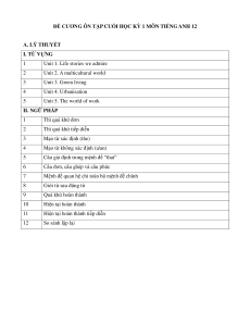 ĐỀ CƯƠNG ÔN TẬP CUỐI HỌC KỲ 1 MÔN TIẾNG ANH 12 A. LÝ THUYẾT I. TỪ VỰNG 1