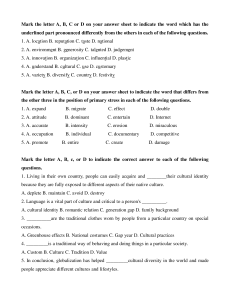 Mark the letter A, B, C or D on your answer sheet to indicate the word which has the