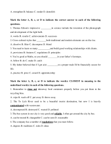 Mark the letter A, B, c, or D to indicate the correct answer to each of the following questions.