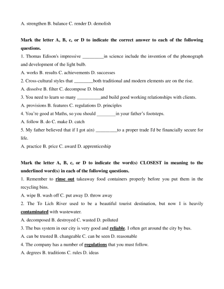 Mark the letter A, B, c, or D to indicate the word(s) CLOSEST in meaning to the