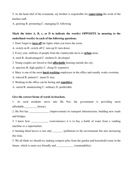 1. As rural residents move into Ha Noi, the government is providing more affordable_________ (house).