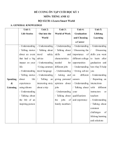 ĐỀ CƯƠNG ÔN TẬP CUỐI HỌC KỲ 1 MÔN: TIẾNG ANH 12