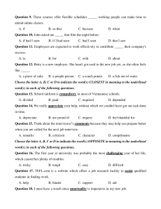 Question 17. TEFL.com is a website which offers a job research facility to assist qualified students in finding work. A. help B. hinder C. support D. aid
