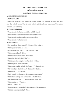 BỘ SÁCH: GLOBAL SUCCESS A. GENERAL KNOWLEDGE I. VOCABULARY