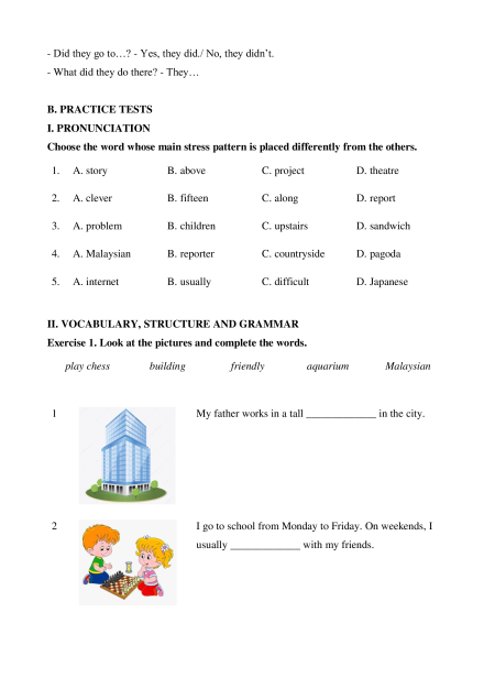 - What did they do there? - They… B. PRACTICE TESTS I. PRONUNCIATION