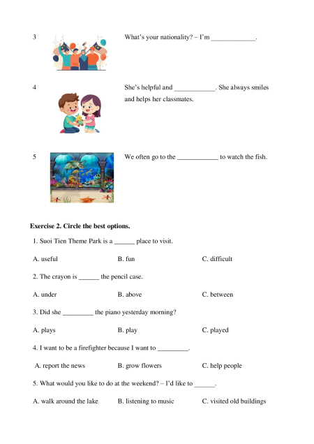 1. Suoi Tien Theme Park is a ______ place to visit. A. useful B. fun C. difficult