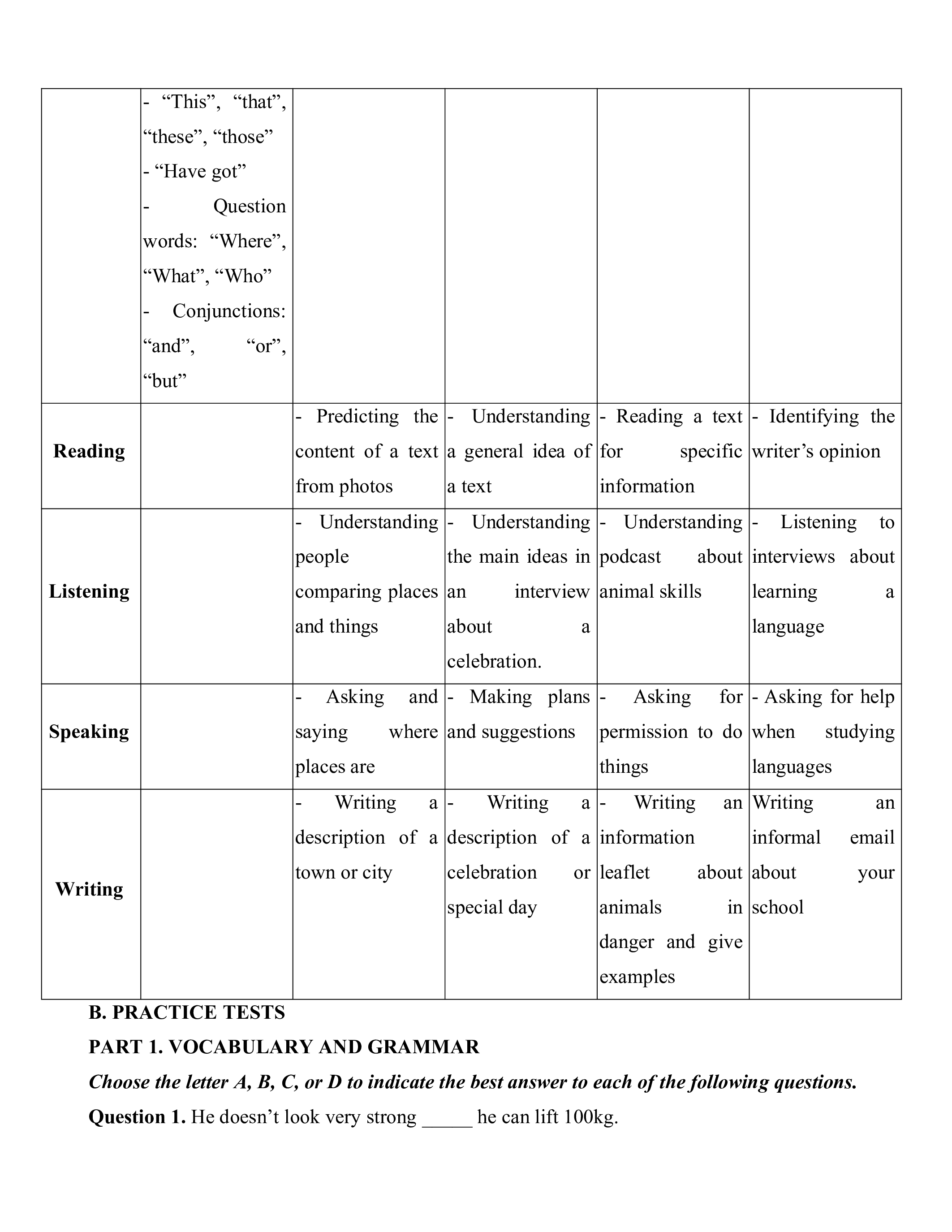 description of a description of a information informal email town or city celebration or leaflet about about your Writing special day animals in school danger and give examples B. PRACTICE TESTS PART 1. VOCABULARY AND GRAMMAR