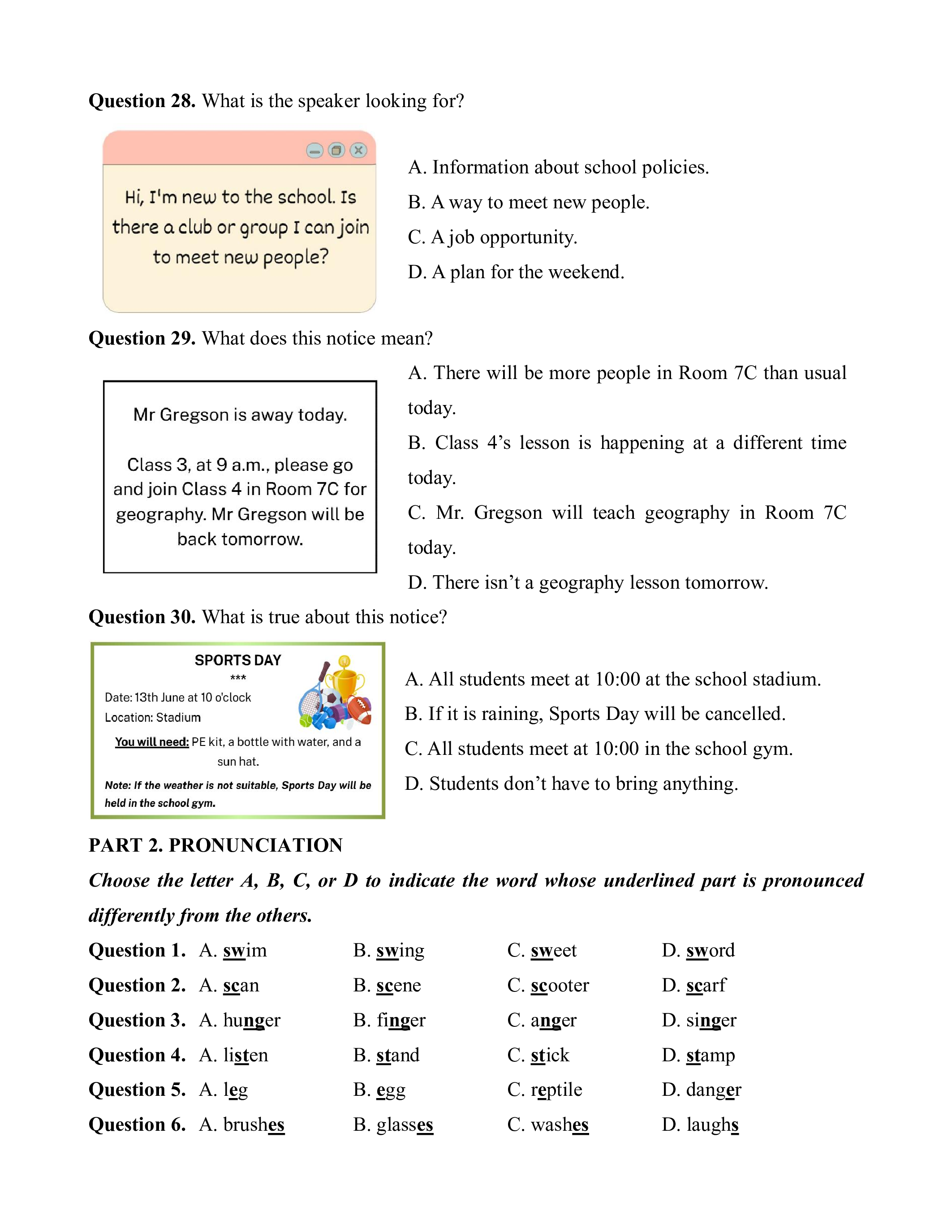 Question 9. Jenny thinks robots _____ help us to do the housework in the future. A. have B. doesn’t C. might D. isn’t