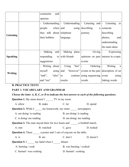 contrast using sequencing event using and “too” results words. linking words B. PRACTICE TESTS PART 1. VOCABULARY AND GRAMMAR