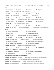 Question 13. While Sarah _____ the bathroom, John _____ the bedrooms upstairs. A. cleaned / vacuumed
