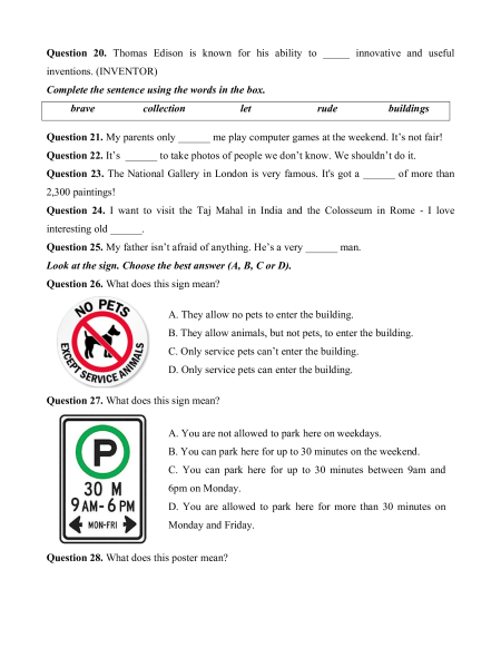Question 20. Thomas Edison is known for his ability to _____ innovative and useful inventions. (INVENTOR)
