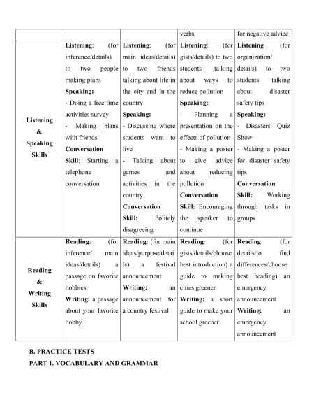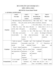 ĐỀ CƯƠNG ÔN TẬP CUỐI HỌC KỲ 1 MÔN: TIẾNG ANH 8
