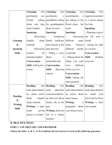 about why they his granddaughter friend about her for help study English about the past home Speaking: Speaking: Speaking: Speaking: - Planning a trip to - Discussing - Comparing - Discussing the UK with a Listening English