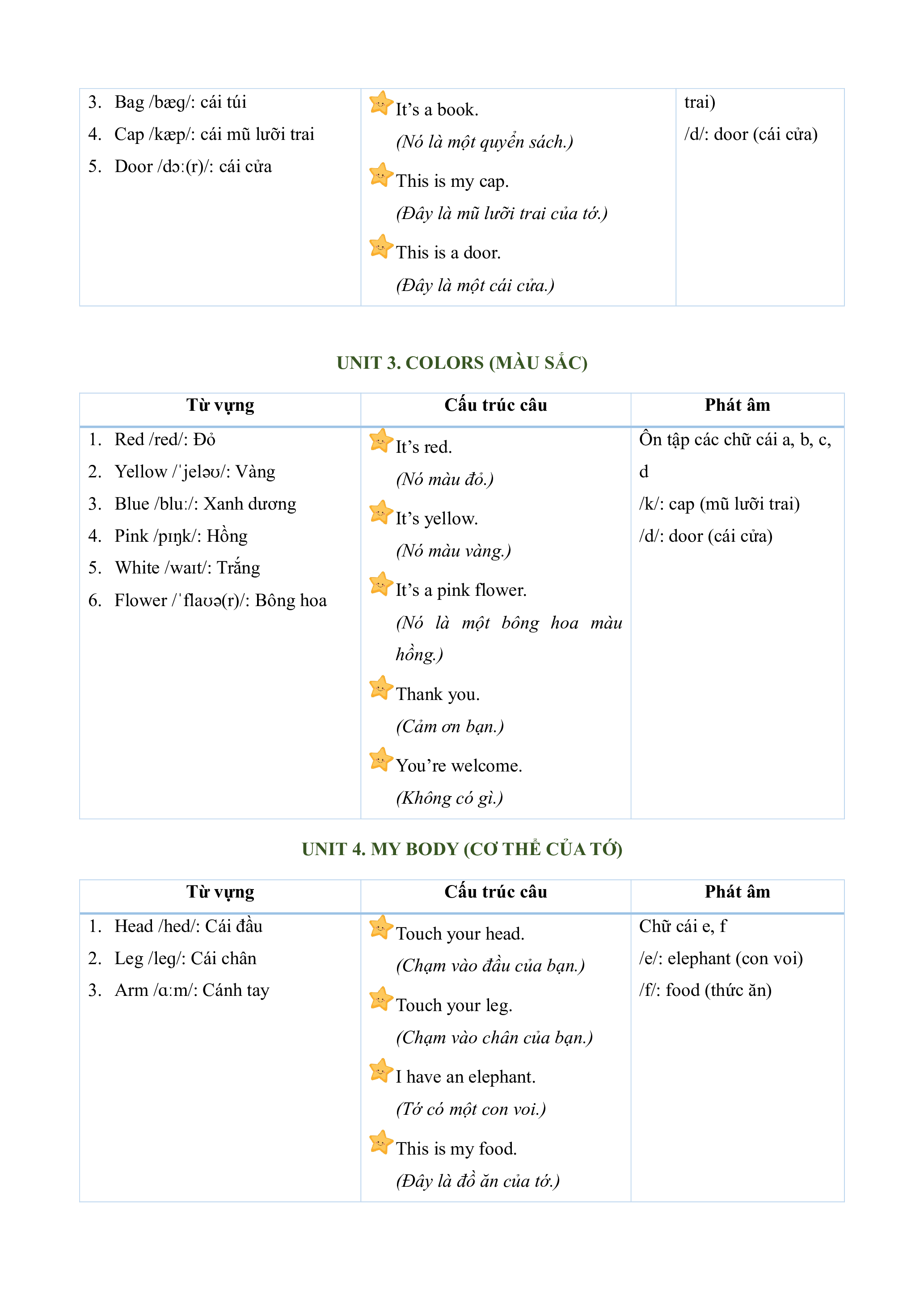 UNIT 3. COLORS (MÀU SẮC) Từ vựng Cấu trúc câu Phát âm 1. Red /red/: Đỏ It’s red.