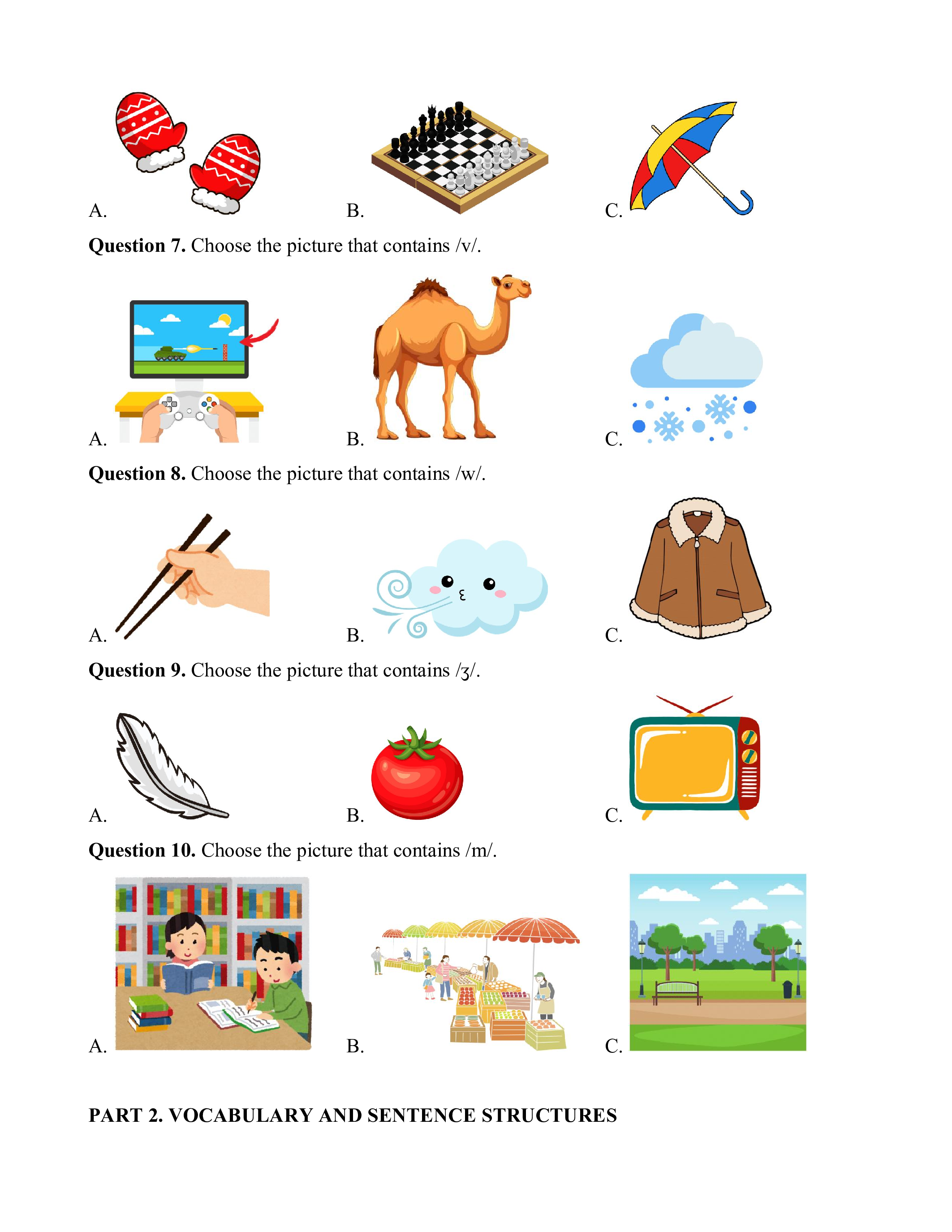 Question 10. Choose the picture that contains /m/. A. B. C.