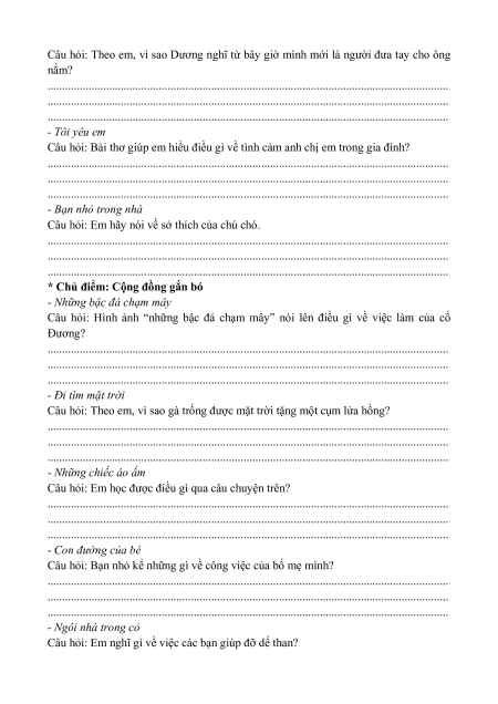 * Chủ điểm: Mái nhà yêu thương - Ngưỡng cửa