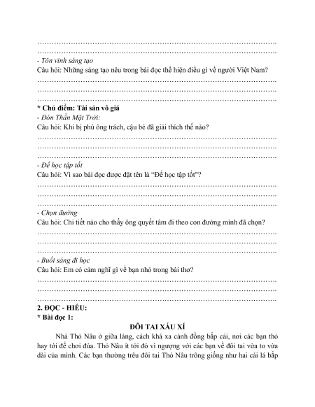 ………………………………………………………………………………………. 2. ĐỌC - HIỂU: * Bài đọc 1: ĐÔI TAI XẤU XÍ