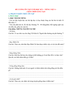 ĐỀ CƯƠNG ÔN TẬP CUỐI HỌC KÌ I – TIẾNG VIỆT 4 –