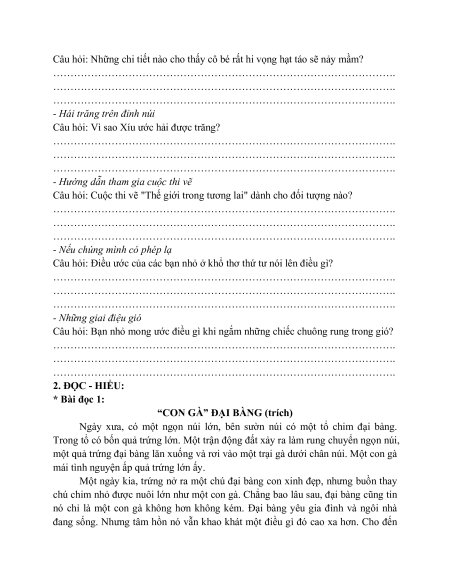 ………………………………………………………………………………………. 2. ĐỌC - HIỂU: * Bài đọc 1:
