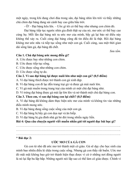 Câu 3. Theo em, vì sao đại bàng con lại chết? (0,5 điểm)