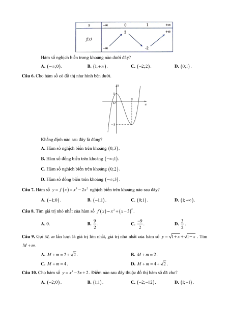 biến, hàm số nghịch biến, đồ thị của hàm số.