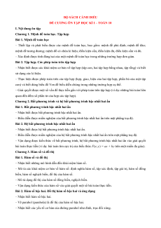 ĐỀ CƯƠNG ÔN TẬP HỌC KÌ I – TOÁN 10 I. Nội dung ôn tập