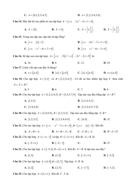 Câu 13. Cho tập hợp A x 1| x , x 5 . Tập hợp A là: