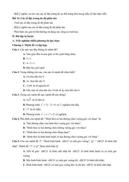 Chương 1. Mệnh đề và tập hợp Bài 1. Mệnh đề