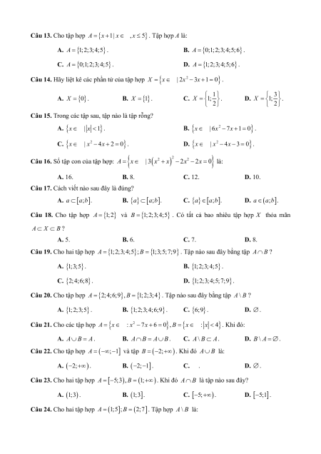 – Thực hiện được phép toán trên các tập hợp (hợp, giao, hiệu của hai tập hợp, phần bù của một tập