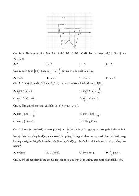 Câu 2. Trên đoạn 1;5 , hàm số 4