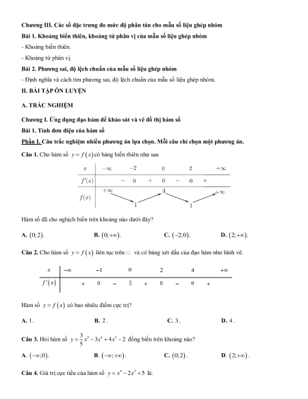 Chương I. Ứng dụng đạo hàm để khảo sát và vẽ đồ thị hàm số