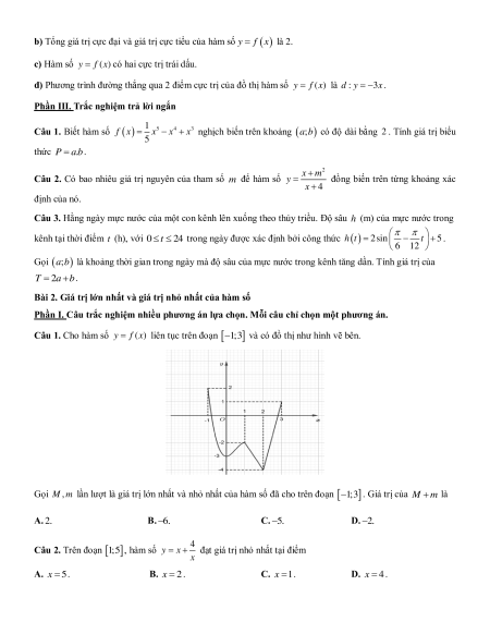 Bài 2. Giá trị lớn nhất và giá trị nhỏ nhất của hàm số