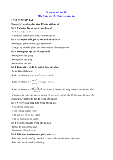 Môn Toán lớp 12 – Chân trời sáng tạo I. NỘI DUNG ÔN TẬP