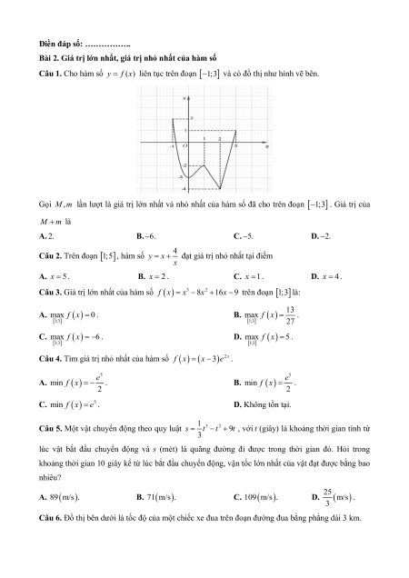 Câu 2. Trên đoạn 1;5 , hàm số 4