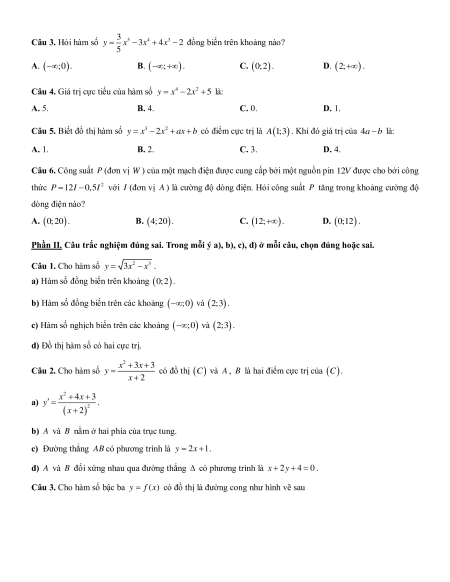 Phần II. Câu trắc nghiệm đúng sai. Trong mỗi ý a), b), c), d) ở mỗi câu, chọn đúng hoặc sai. Câu 1. Cho hàm số 2 3