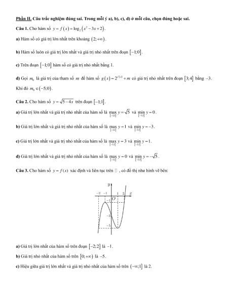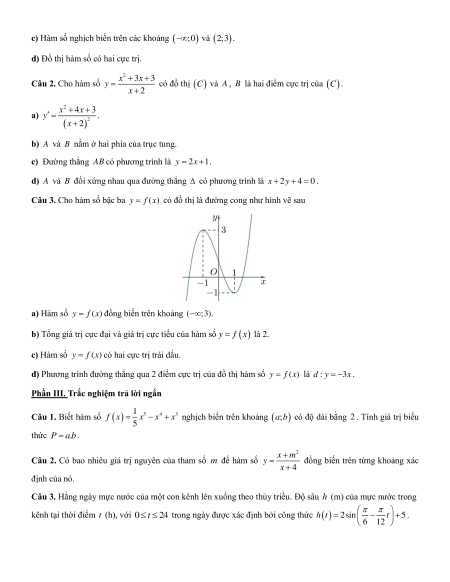 Phần II. Câu trắc nghiệm đúng sai. Trong mỗi ý a), b), c), d) ở mỗi câu, chọn đúng hoặc sai. Câu 1. Cho hàm số 2 3