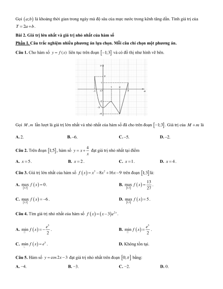 Bài 2. Giá trị lớn nhất và giá trị nhỏ nhất của hàm số