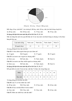 Câu 23. Loại nước nào ít người ưa chuộng nhất? A. Nước cam. B. Nước dứa. C. Nước chanh. D. Nước ổi.