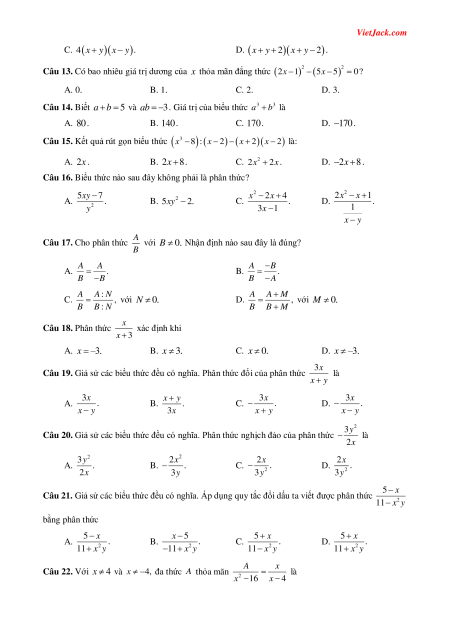 đa thức A thỏa mãn 2 x 16 x là 4 VietJack.com A. 2 A x 4 . x B. 2 A x – 4 . x C. 2 A x 4. D. 2 A x 16 . x 2 x xy