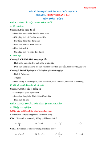 Đề cương ôn tập Cuối kì 1 Toán 8 Chân trời sáng tạo cấu trúc mới